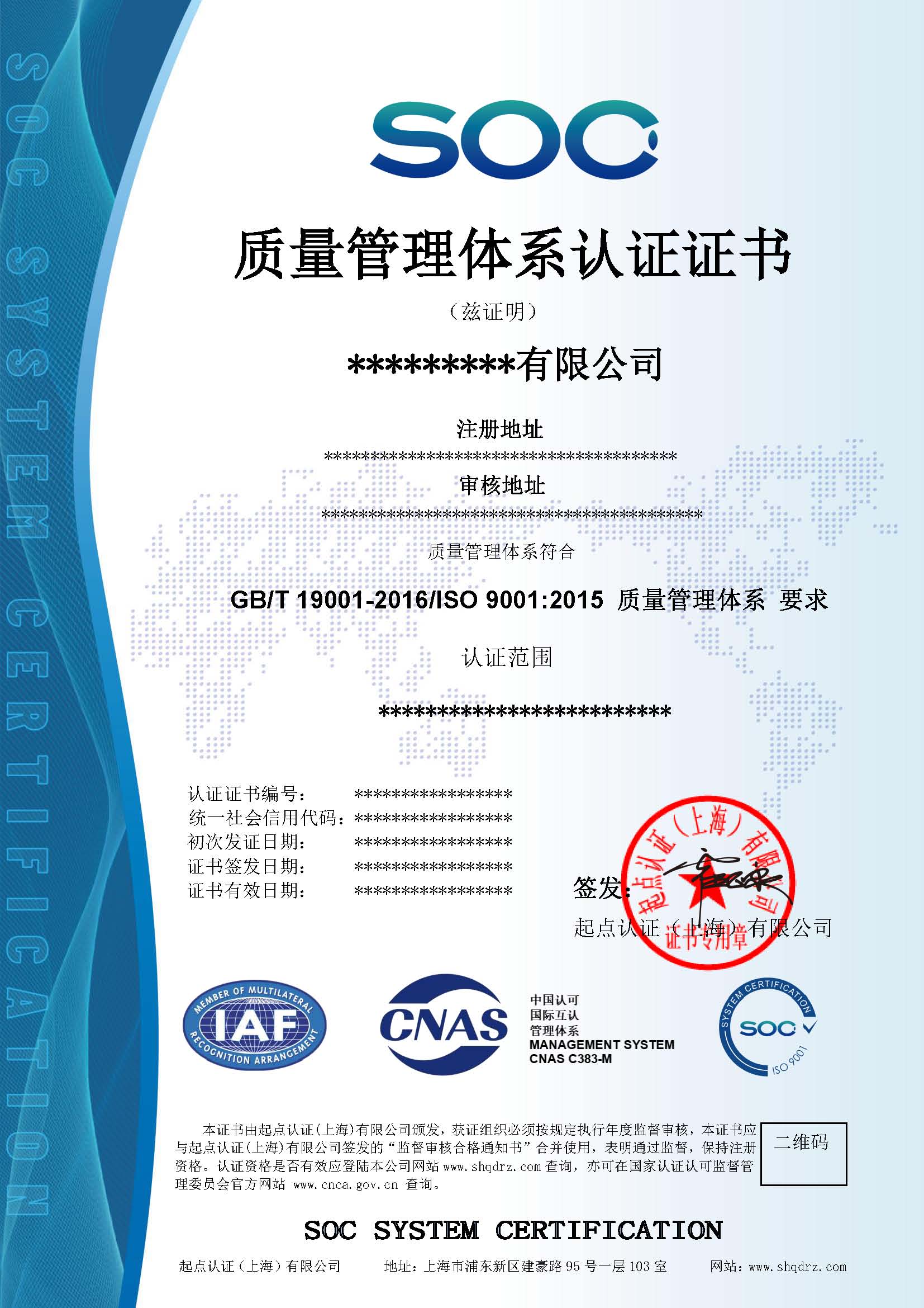 质量管理体系认证证书